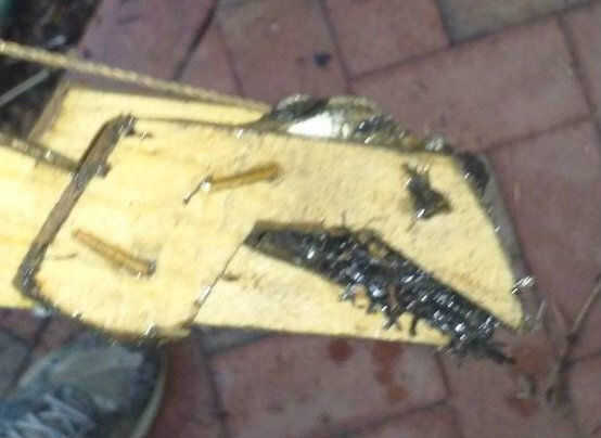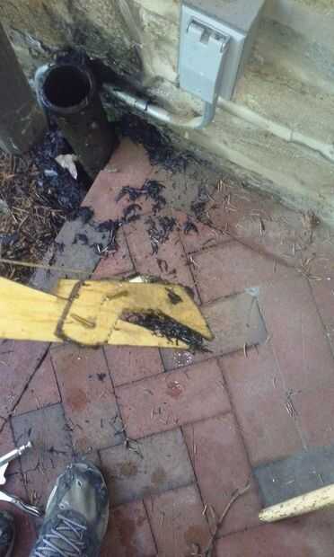 ¿Tienen un tubo lleno de cosas tales como agujas de pino y no desea vaciar fuera el desagüe con tanta agua lo inunde algo? Algunas personas pueden utilizar una serpiente de drenaje, pero sentí que era demasiado de una obstrucción y no quería que la serpiente para cualquiera a través del tubo. Construí esta herramienta madera para eliminar agujas de pino y otros desechos de un drenaje al aire libre de la bajante para minimizar la cantidad de agua necesaria para evitar fugas en mi sótano. Básicamente es un conjunto de mordazas de acaparamiento tamaño para ajustarse a la pipa y con cadenas. La segunda imagen muestra la ruina que poco a poco se me quitan del desagüe. Esto funcionó bien para mi tubo de 3" en el fondo.