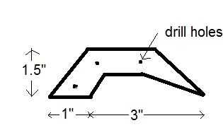 2) Tome otro pedazo de pelar y cortar los dos lados de la mandíbula con el patrón en la tercera foto. Cortar un bloque pequeño de madera (o tres pedazos pequeños de stripping) esto sirve como espaciador entre las piezas laterales de la mandíbula. Se puede ver el bloque en la segunda foto.