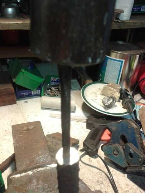 Simple - alinee el extremo de la redondeada del extremo de la varilla con el agujero central en el mango, le dan un par de golpecitos con el martillo y hey presto todo hecho. (imagen 7)