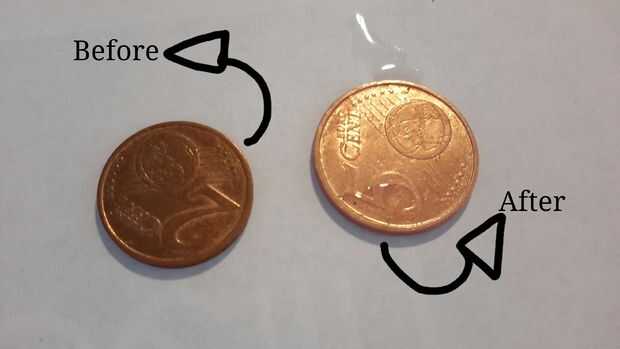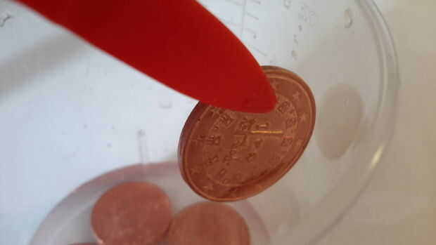 Ahora el último paso tienes que sacar las monedas de la Copa con la pinza y ahora tenemos cobre brillante brillante