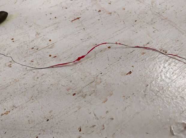 Simplemente inserte el cable en el extremo caliente como en la fotografía superior, luego quite el cable. Cuando quite el cable a ver que plástico como pegado a ella, simplemente cortado esa parte del cable y aclarar y repetir. Sabe usted que se realiza cuando se puede introducir el cable en el extremo caliente y tire de ella a través de todo el camino y no tienen ningún plástico en el alambre.