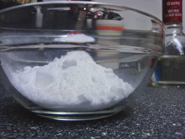 (alternativa: mezclar vinagre y bicarbonato de sodio en un recipiente para formar una pasta y luego que sobre el piso del horno. Asegúrese de verter el vinagre lentamente porque fizzes bastante alto.)