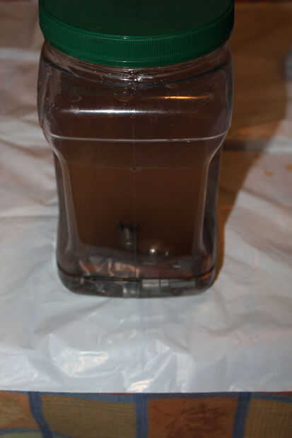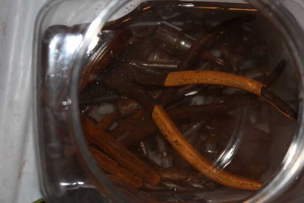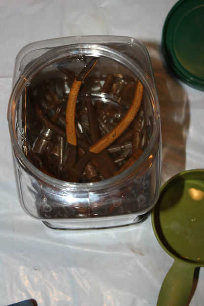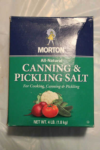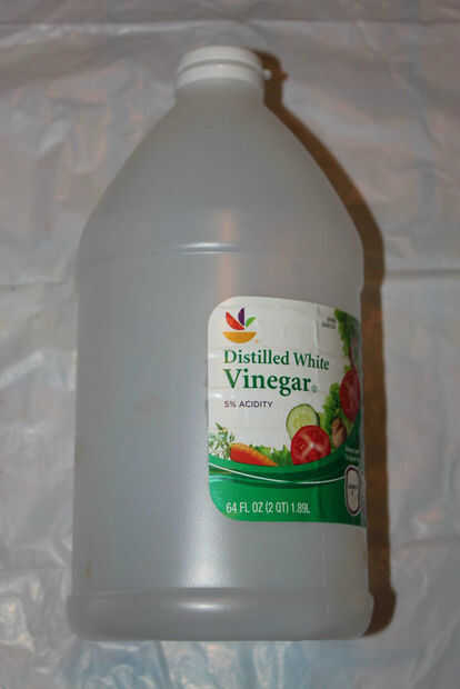 Después de todo está en el recipiente, llenarlo con algún vinagre blanco hasta que todo esté completamente sumergido. Medir cuando se agrega el vinagre para que sepa cuánta sal agregar.