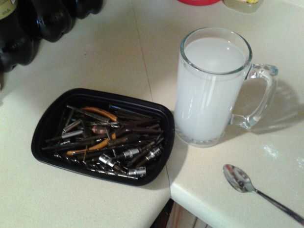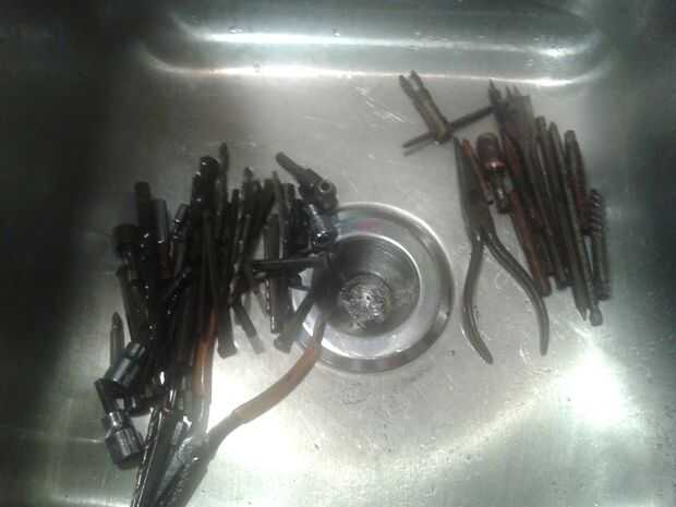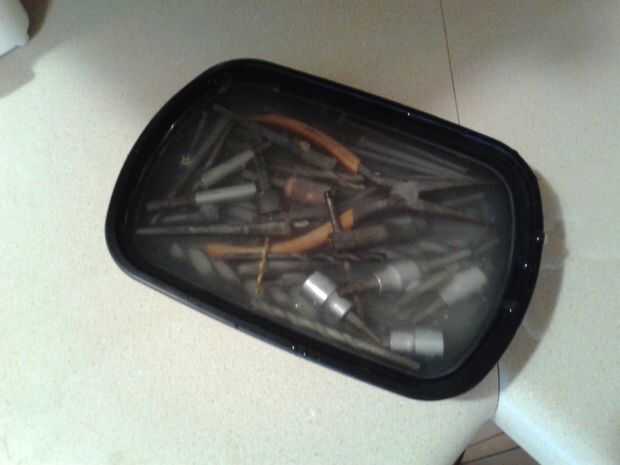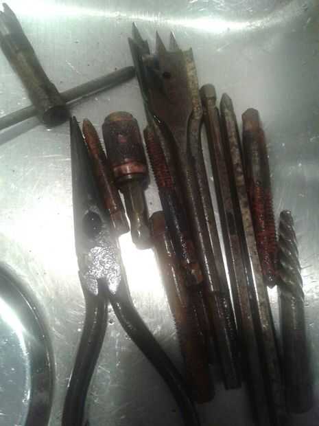 No es infrecuente para allí ser algunos óxido en las herramientas de la izquierda, una rápida frote con algunos scotch-brite o lana de acero recibirá los últimos molestos manchas de oxidación de tus herramientas.