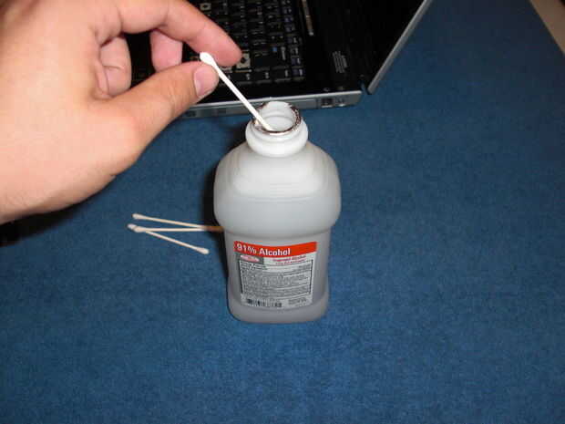 Sumergir el hisopo de algodón en el alcohol de frotamiento y comienzan a limpiar alrededor de cada puesto clave. Recuerde que si algún líquido hecho su camino debajo de las teclas para eliminar los portadores claves así y remójelos con las teclas.