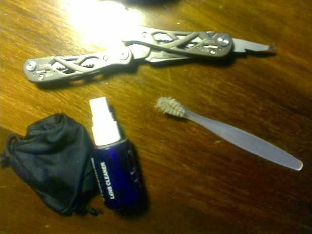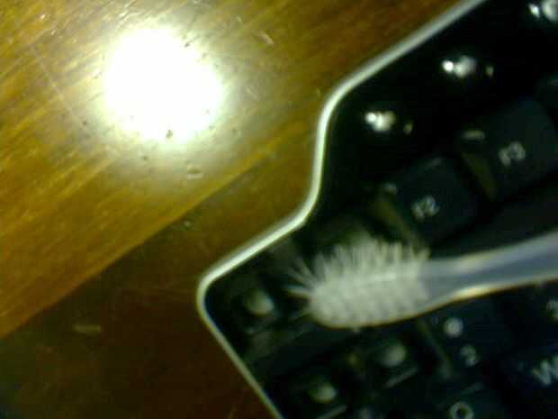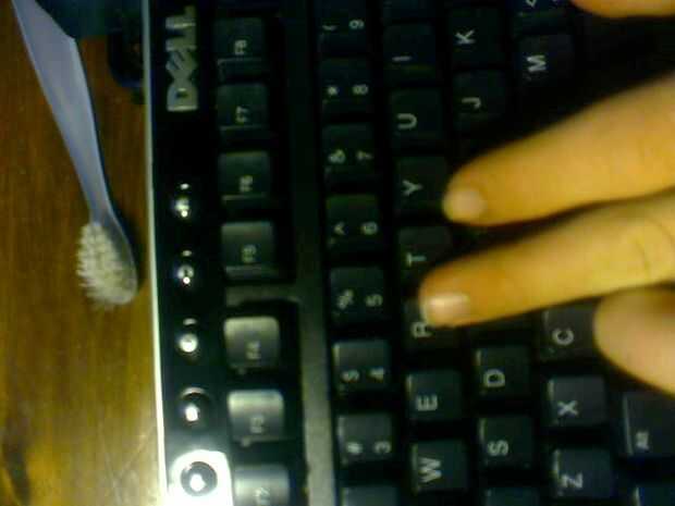 5) utilizando el cepillo de dientes frote alrededor de donde los botones ir y sacudan la suciedad