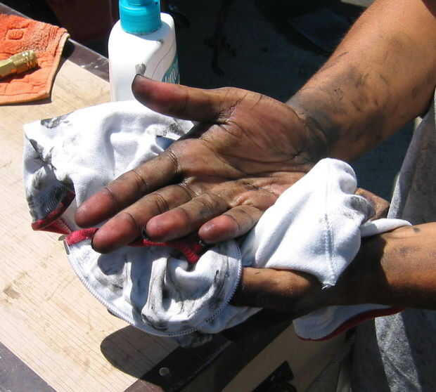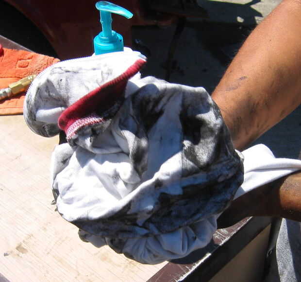 Limpiar las manos grasosas con loción - Gojo del pobre (2 / 3 paso)