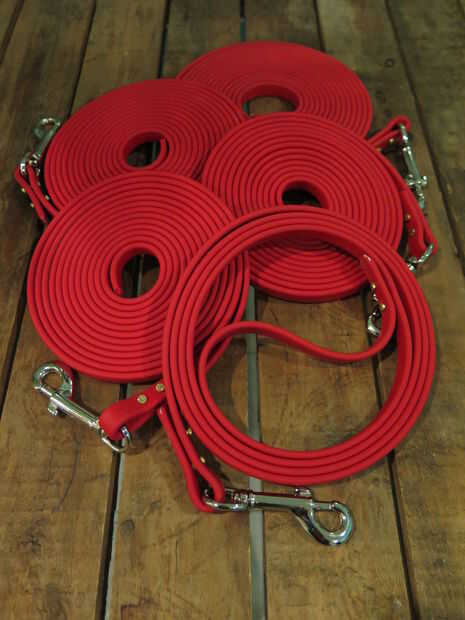 Lo que he notado es que odio tocar su húmeda y fangosa de la correa o las líneas después de la caminata. El problema es que la mayoría de la correas están hecha de materiales que absorbe la humedad. Noté durante caminatas por senderos que algunos de los paseadores de perros profesionales utilizan un tipo diferente de la línea que las que estoy acostumbrado. Investigué sobre ellos pero encontró a ser bastante caro, así que hizo algunas excavaciones y encontró el material que utilizaron y ordenaron algunas junto con algún hardware.