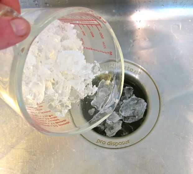 Alternativo: En vez de usar hielo regular, puede congelar el vinagre en una bandeja de hielo y utilice los nuevos cubos para limpiar los elementos moliendo. Si usted decide congelar vinagre, recuerda marcar de alguna manera (colorante?) o marcar el ziplock en almacenas para que no terminen con vinagre hielo en tu próximo vaso de agua.