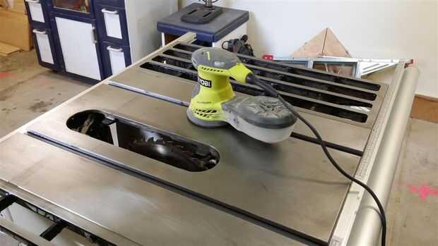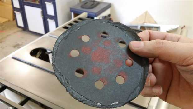 Ahora que se limpia la parte superior, podemos pasar a un grano más alto. Me montado un disco de 240grit a mi lijadora y tenía en él.
