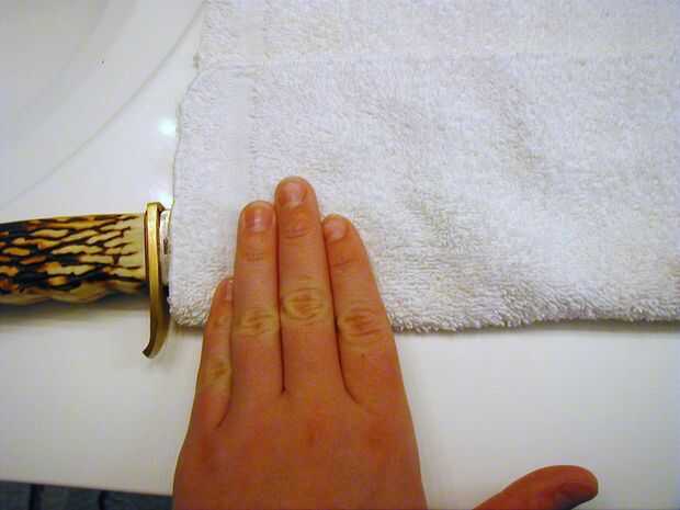 Repita este paso en el otro lado de la hoja, luego con el trapo, quite cuidadosamente el aceite.