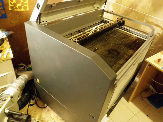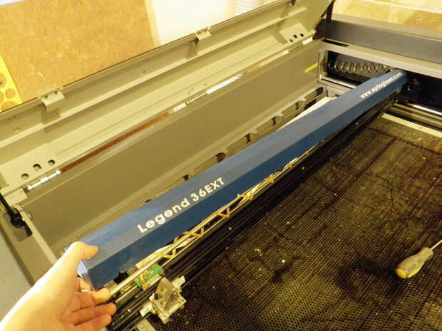 Usando el accesorio rotatorio en el Epilog Legend EXT36 en el muelle 9.Se requiere experiencia previa con láser de Epilog.Tenemos 3 de estos en el taller del muelle 9. Se encuentran en los cajones del personal. Por favor notificar al personal que va