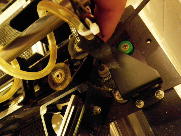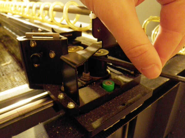 Esto bloqueará la polea en su lugar, que la correa queda floja.