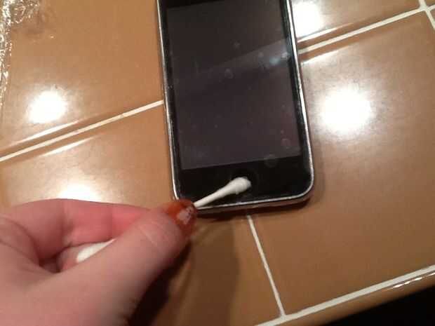 poner alcohol de frotamiento de una bola de algodón y frota alrededor de la superficie hasta que el pulgar imprime vienen, luego seca con otra torunda de algodón. luego tome una punta q y frotar el botón de inicio con un poco de alcohol