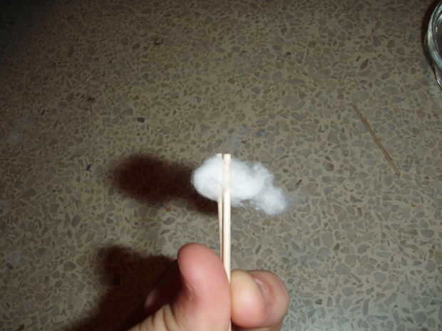 Entonces puso un extremo del algodón entre los dos extremos de los palillos.