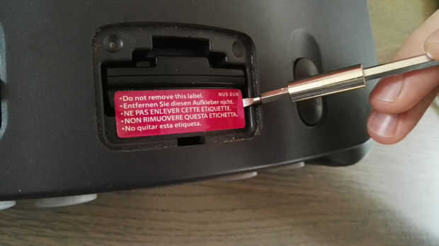 En mi caso enciende el N64, pero no estaba recibiendo una imagen. Después de la limpieza ha funcionado otra vez! Que muestra lo simple y fácil es arreglar una N64. OK, permite comenzar. Antes de cualquier tornillos tenemos que sacar la memoria extra (si no lo tiene puede omitir un paso). Sacar la pinza y retire con cuidado la pegatina con un flathead destornillador. Intente sacar la memoria empujando la memoria hacia usted y hacia arriba. Hay herramientas especiales para esto, pero no poseerlo. Con la memoria hacia fuera, permite desmontar el resto de la N64!