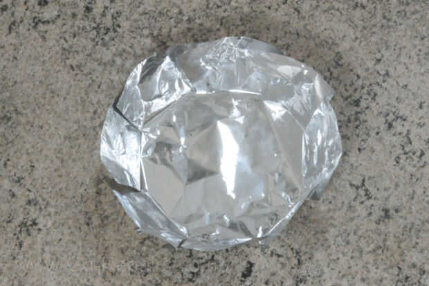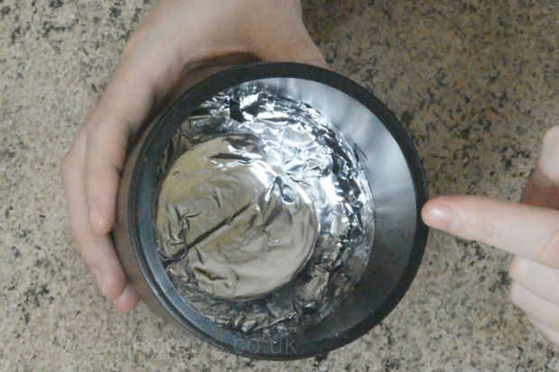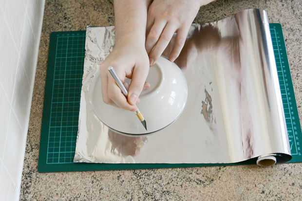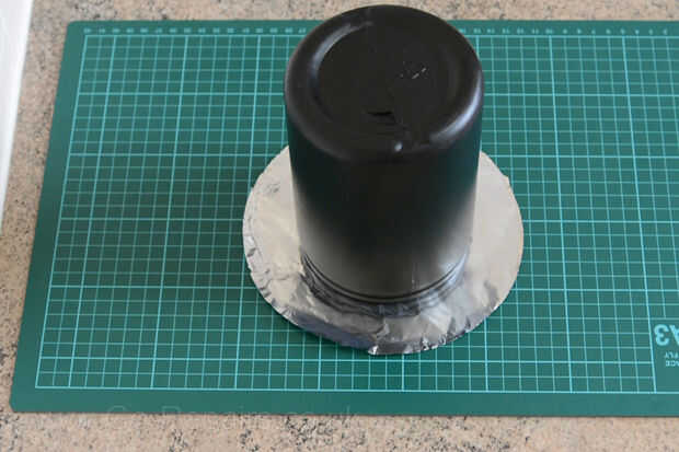 En primer lugar asegúrese de que su recipiente esté limpio y libre de etiquetas. Cortar una pieza circular de aluminio, ligeramente más ancha que el diámetro de su contenedor. Usé un bol porque era lo suficientemente grande para mis necesidades. Cortar ranuras alrededor del borde de la pieza circular de aluminio, son por lo que les puede traslaparse. Cuando usted ha hecho su papel de corte debería verse como una cabeza de la flor con los pétalos. Enrollamiento de los pétalos de aluminio hasta que se parece un poco a un recipiente. Ahora pegue la sección base en su lugar, asegurándose de que usted ir parcialmente en la pared.