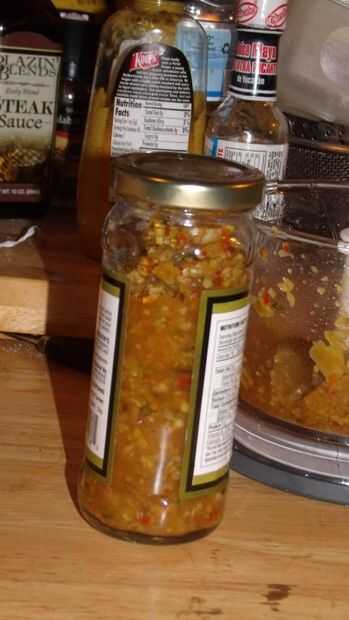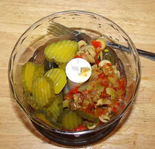 Puedes ver dónde esto va espero, coloque su izquierda sobre encurtidos en el procesador y picar como fino o curso como usted prefiera. Reciclé un tarro verde oliva para el almacenamiento después de lavarla bien, lo microondas y enjuagar con un poco vodka (que también reciclé)