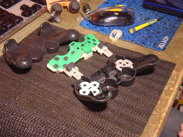 Lo último que retirar antes de un lavado total de la caja es la Asamblea de botón todo. Esto tirará fuera el caso. Ahora, tirar de los émbolos de goma por detrás de los botones y luego retire los botones. A continuación, tire de los botones L1 y R1 fuera de su marco, así como los pedacitos de goma allí también. Para quitar los botones L2 y R2 de la cáscara de la parte inferior, basta con pulsar a continuación desde el exterior y se soltará. También hay un pequeño trozo en forma de X (mina tiene una pierna rota) en el D-pad que desea mantener. Esto impide que el D-Pad va a todas las direcciones a la vez, así que no pierdas!