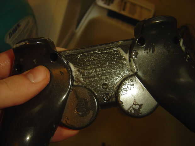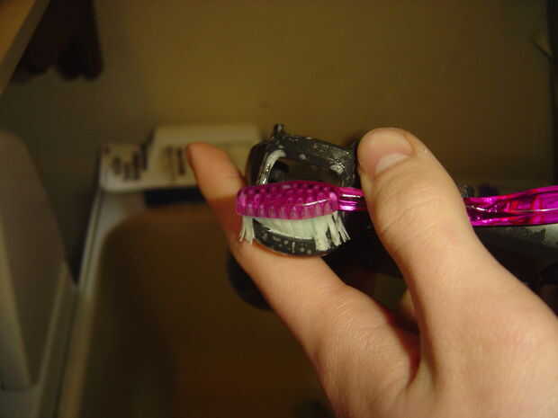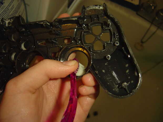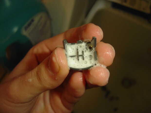 Quiere empezar por enjuagar todas las piezas. Utiliza un cepillo de dientes y jabón amanecer aquí pero funciona cualquier cepillo de cerdas suaves y un detergente suave. Haz algo de jabón en el cepillo y empezar a fregar, prestando especial atención a los bordes de los bits de caso, dentro de los agujeros del botón y alrededor de los bordes de los botones (el poco que roce contra el caso). La suciedad tiende a atascarse en estas áreas.