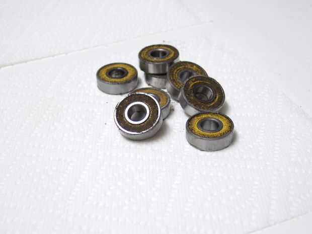 Los sellos pueden ser apareció desde el otro lado con un pequeño perno o grapa de enderezado-hacia fuera. Pegue su pin entre la jaula de bolas y el cojinete exterior y presione el sello hacia fuera. Objetivo para el centro del sello, porque está hecha de metal y no perforarla.
