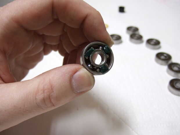 Difundir la grasa alrededor con el dedo y el cojinete del rodillo hacia adelante y hacia atrás hasta que pueda ver todas las bolas de manera adecuadas.