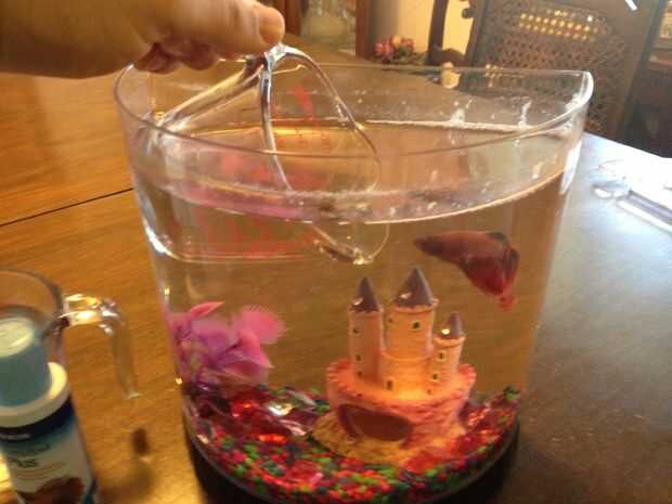 Sólo una taza o 2 debe ser fino. Dejo a Fred en su tanque. No me gusta subrayarlo hacia fuera demasiado. No demasiado mucho más que un par de tazas y no cambiar nunca completamente el agua. La vieja agua y rocas en el fondo contienen bacterias beneficiosas para tu Beta. Si vaciar completamente y limpiar a una condición prístina corre el riesgo de realmente destacando su pescado hacia fuera y entonces las bacterias tiene que empezar de nuevo. No es ideal.
