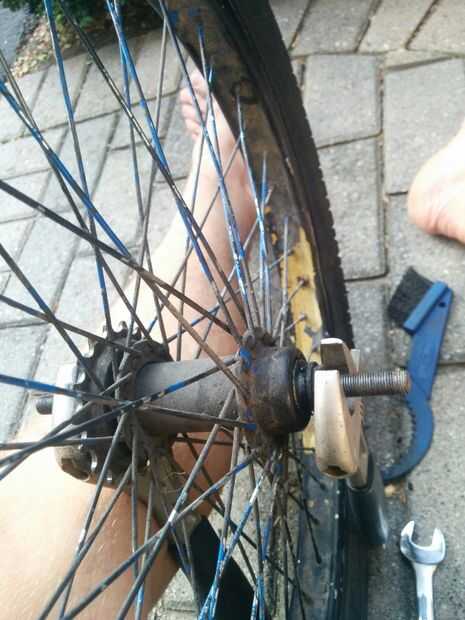 Afloje uno de los extremos, y la otra Afloje así viendo como las tuercas del eje sólo salen a un lado.