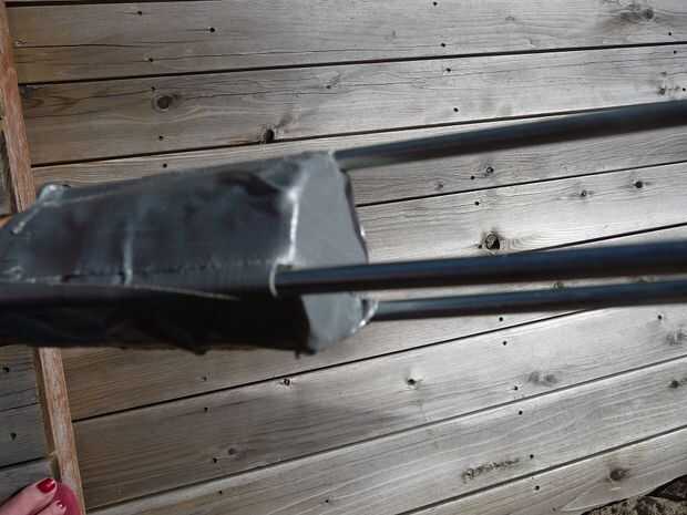 Se aplica una envoltura de cinta, el lado adhesivo hacia fuera, en la punta de la vara.