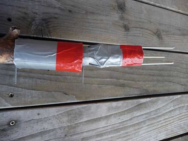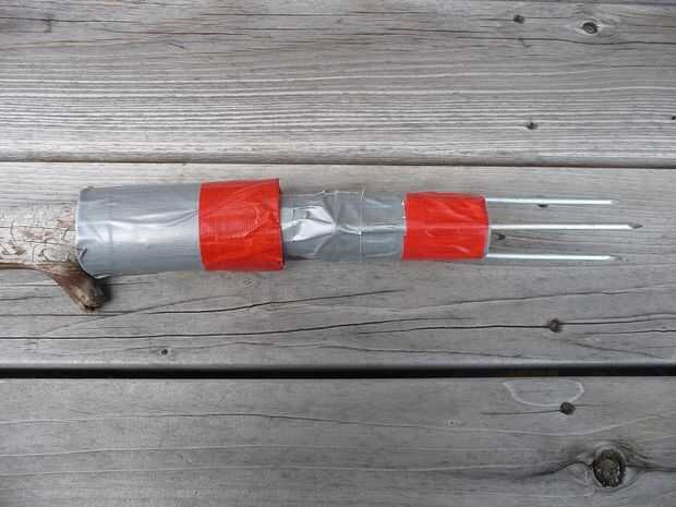 Colóquese el deslizador TP. Martille un clavo en el palo en ambos extremos de la botella TP y dóblelos hacia adentro, hacia los demás. Cuando estés listo para utilizar el deslizador TP, solo gira el clavo doblado hacia afuera.
