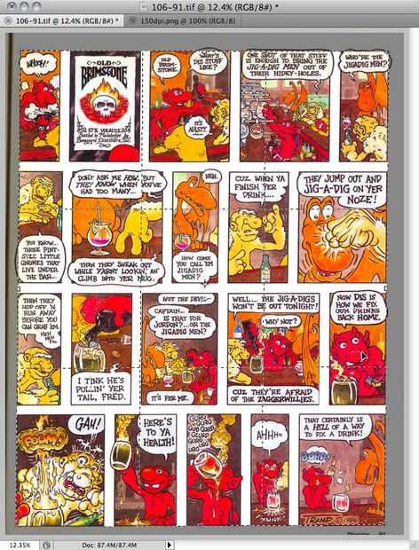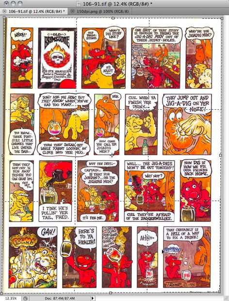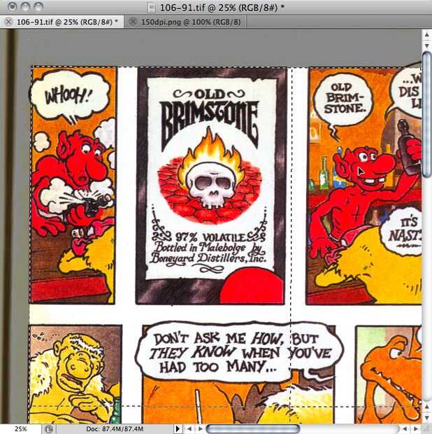Que probablemente no quieres recortar a esta área, porque pueden sacar cosas (en mi ejemplo, alguna palabra globos sobresalen fuera de los marcos). Las anclas del centro del gancho agarrador y arrastre los bordes del documento. Los ángulos sesgados no cambiará como se mueve el centro de la zona de cultivo.