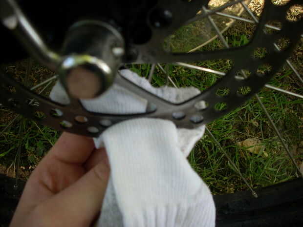 apenas necesita una imagen, porque la belleza está en la simplicidad.Simplemente coloque un trapo de grasa a los extremos de un abierto U-lock con gomas. Mantenga presionado el cierre por la curva con una mano y ejecutar borde de trapo entre sus dien