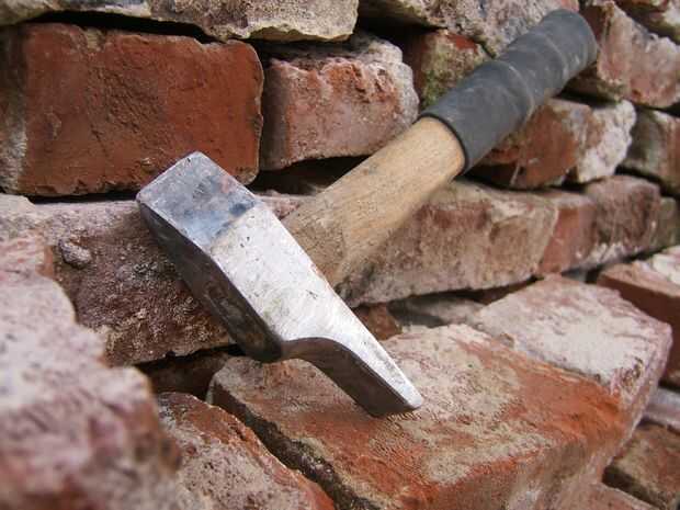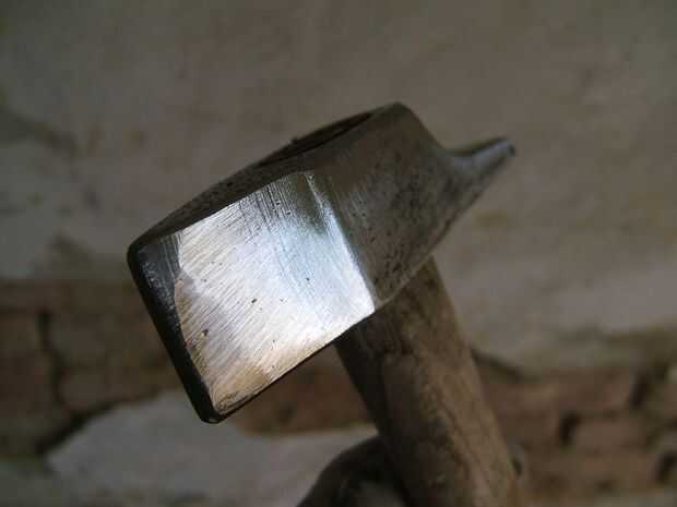 Sostener un ladrillo en la mano izquierda y smash en él ' el destral de la forma ' con el martillo de Gustavs.