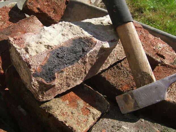 Con un ángulo de amoladora que modifiqué un martillo que me dio mi padre hace mucho tiempo, dando por resultadola última herramienta de limpieza para restaurar viejos ladrillos, llamado 'Gustavs Hammer' - nombre de mi padre.