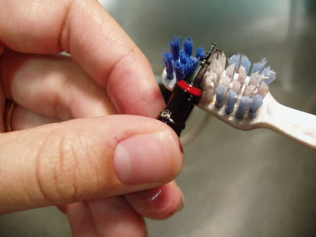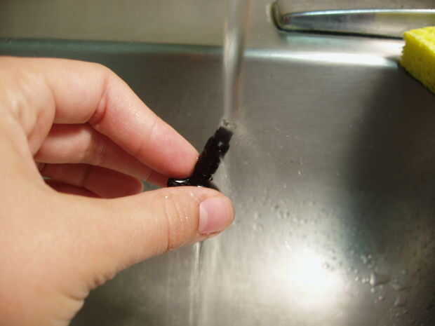 Nota: no use jabón! Vamos a usar una solución especial de limpieza que es un poco más efectiva en la eliminación de algunas tintas que jabón en los bits más difíciles.