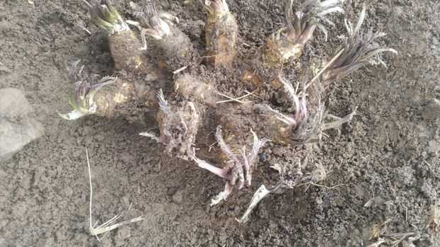 * Unas pocas plantas se habían convertido en grumos grandes 6. Había dejado unas pequeñas raíces en la tierra para la próxima cosecha.