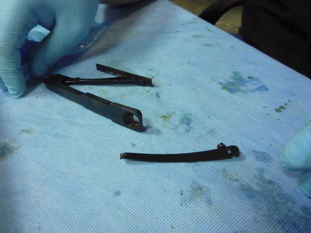 En este paso será desarmar y friegue el ensamblaje del resorte del compartimiento. Asegúrese de ser cuidadosa ya que esta parte tiene varias pequeñas bisagras que deben limpiarse bien.