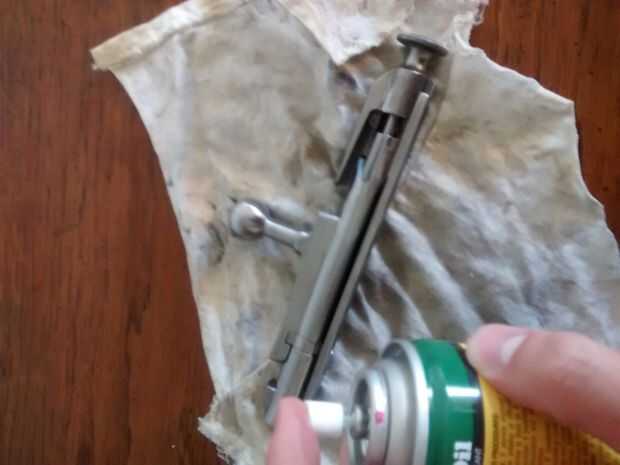 Con un trapo aceitoso, limpie el tornillo con cuidado en busca de residuos de polvo y suciedad. Prestamos especial atención a la cara del cerrojo. La cara del cerrojo es la parte donde se asiente la ronda contra. Este es el lugar sobre todo probable a tener residuos de energía. Usar un trapo aceitoso y cuidadosamente Limpie donde va el perno en la pistola y la revista. Aunque no es necesario cada vez que usted vaya tiro, usted debe, en cada tercera o cuarta vez, la revista y limpie Quite y aceite las piezas individualmente. Este proceso, relativamente sencillo, varía de un rifle para rifle y por lo tanto no está cubierto.