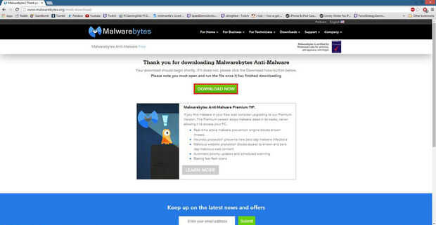 Usando su navegador de preferencia ir a http://www.malwarebytes.org en internet