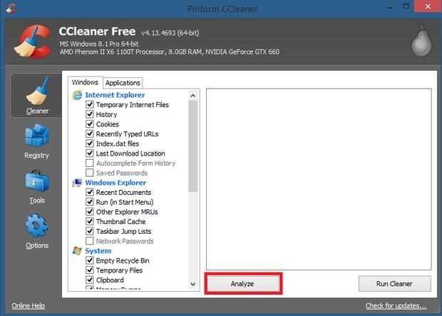 - Haga clic en Analizar, éste analizará tu ordenador antes de ejecutar el limpiador