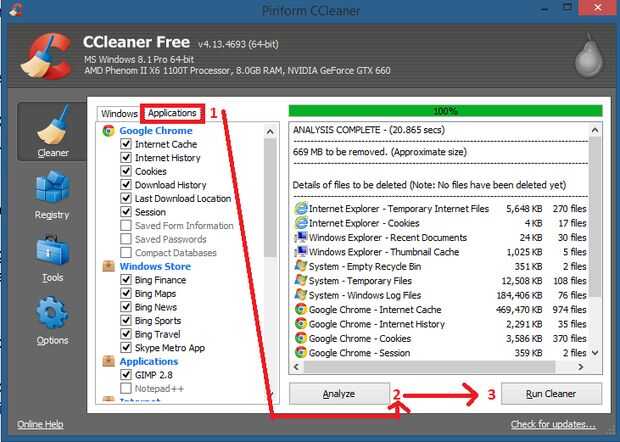 - Nota: Si tienes un web browser abierto le pedirá que cierre antes de la limpieza termine corriendo