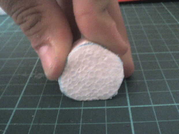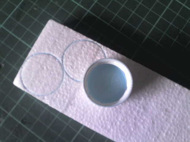 Empuje la parte superior de la botella sobre la pieza de poliestireno. Corte este círculo con un cuchillo. Luego apriete el poliestireno por lo que fácilmente cabe en la parte superior de la botella pero cuando su cubierta de fieltro se sujete firmemente.