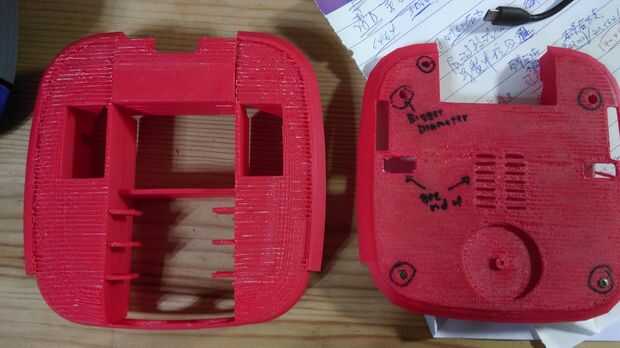 El siguiente paso es construir las tripas. Para mi diseño, incluye una cubierta superior, un chasis y un gabinete trasero. Lo que hice para arreglar la cubierta superior y el chasis juntos es por tener separador y tornillo, así tener en cuenta al diseñar el 3D. Mientras que atornillar firmemente la cubierta superior con carcasa inferior, he diseñado una estructura que puede ayudar a sujetar los dos ventiladores en la posición en la parte posterior, esta forma no necesita considerar cómo atornillar firmemente los motores, gire la cubierta superior para arriba-lado-abajo y los dos motores, montar el chasis con tornillos y es done.re
