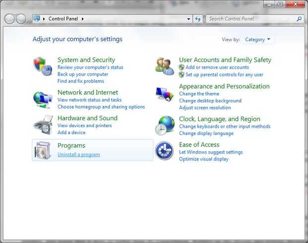 2. vaya al panel de control y haga clic en "Desinstalar un programa" y esperar a que la lista a ser poblada. (Imagen 2)