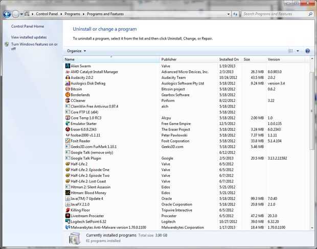 3. desde esta ventana, puede ver todos los programas actualmente instalados y haga clic para eliminarlos. (Imagen 3)