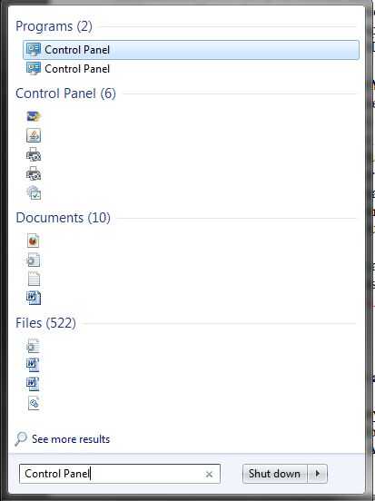 1. para quitar programas, primero abra el menú Inicio y entrar en "Panel de Control" en la barra de búsqueda. (Imagen 1)