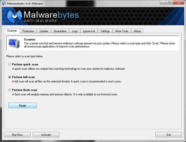 1. en primer lugar, descargue la versión gratuita de MalwareBytes (http://www.malwarebytes.org/) e instalar el programa.
