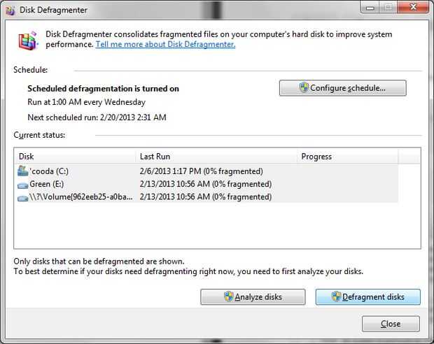 Nota: como parte del mantenimiento periódico, desfragmentación debe realizarse semanalmente.