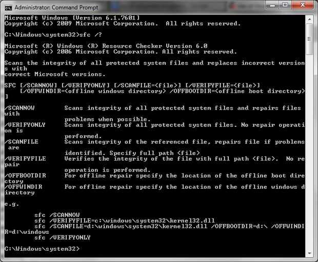 Nota: Muchas personas tienen gran inquietud sobre el uso de los comandos de windows, especialmente cuando un extraño guía en internet les está diciendo qué hacer. Para poner tu mente en la facilidad, trate de escribir "sfc /?" (sin las comillas) para ayuda de comando sfc. Desde allí se puede ver una explicación completa de los comandos e incluso ejemplos de qué hacer con él directamente de Microsoft. (Imagen 2)