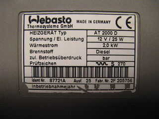 El Webasto AirTop 2000 D es un tipo de calentador de espacio del combustible diesel eléctrica. Estas se encuentran en grandes camiones, RVs, equipo de construcción y embarcaciones. Son populares en remolques de tractor porque la cabina del camión se puede calentar sin tener que hacer funcionar el motor. Dependiendo de la configuración de temperatura una unidad puede funcionar 24 horas en menos de un galón de combustible.